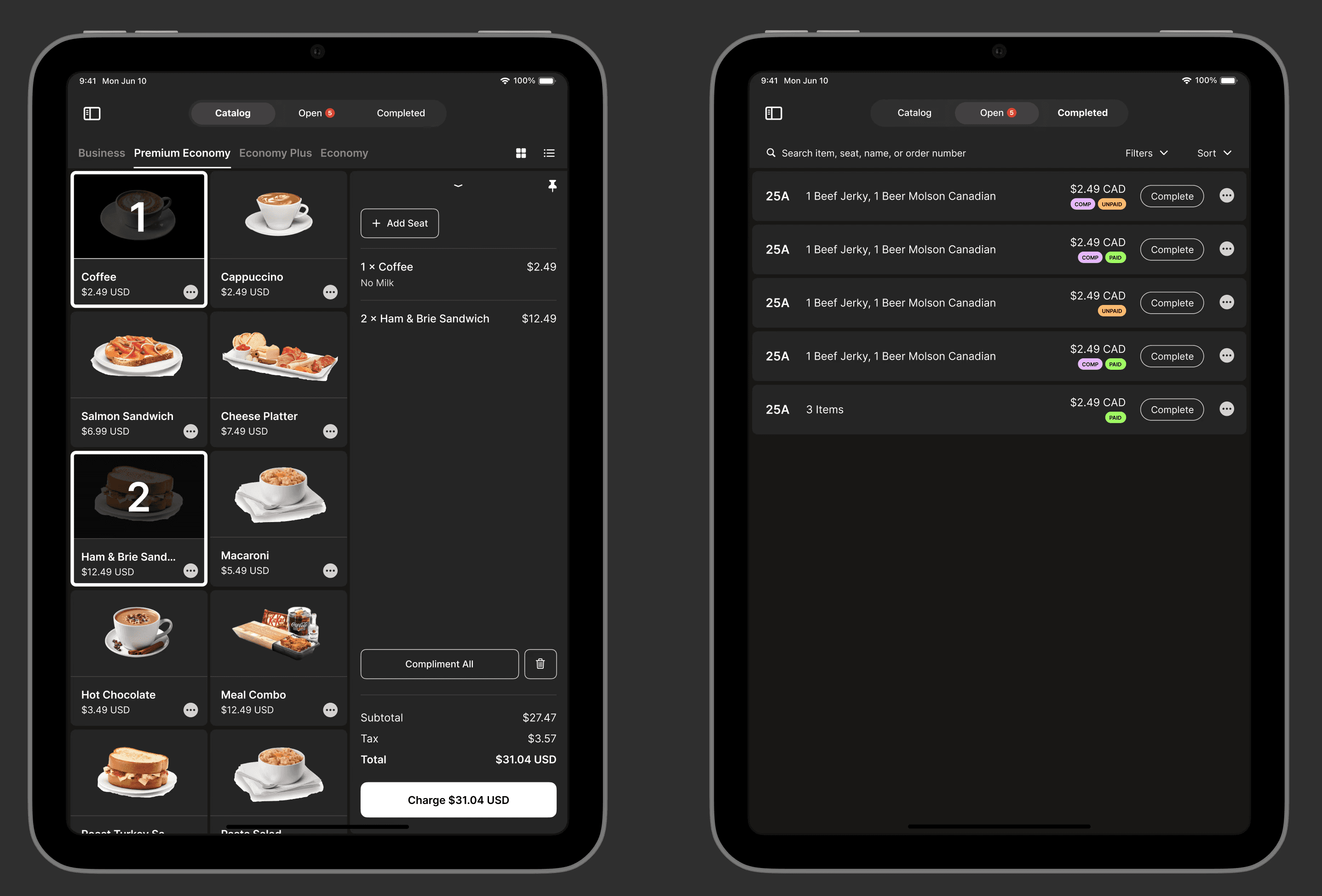 If you're confused about which cabin class a seat is in, simply start your order with a seat number and the crew app can figure it out for you.