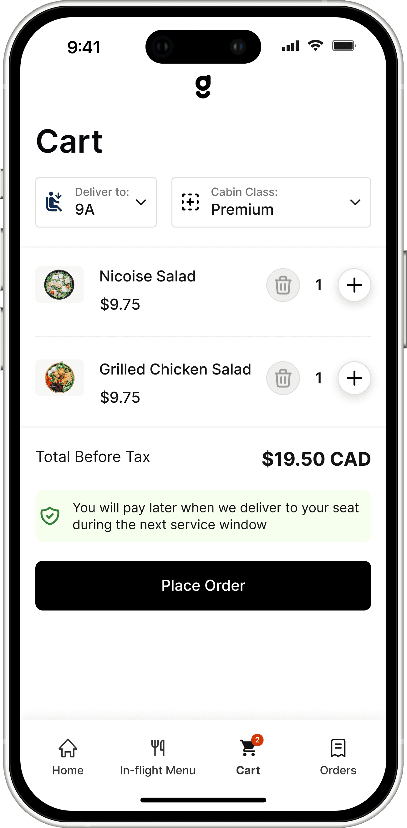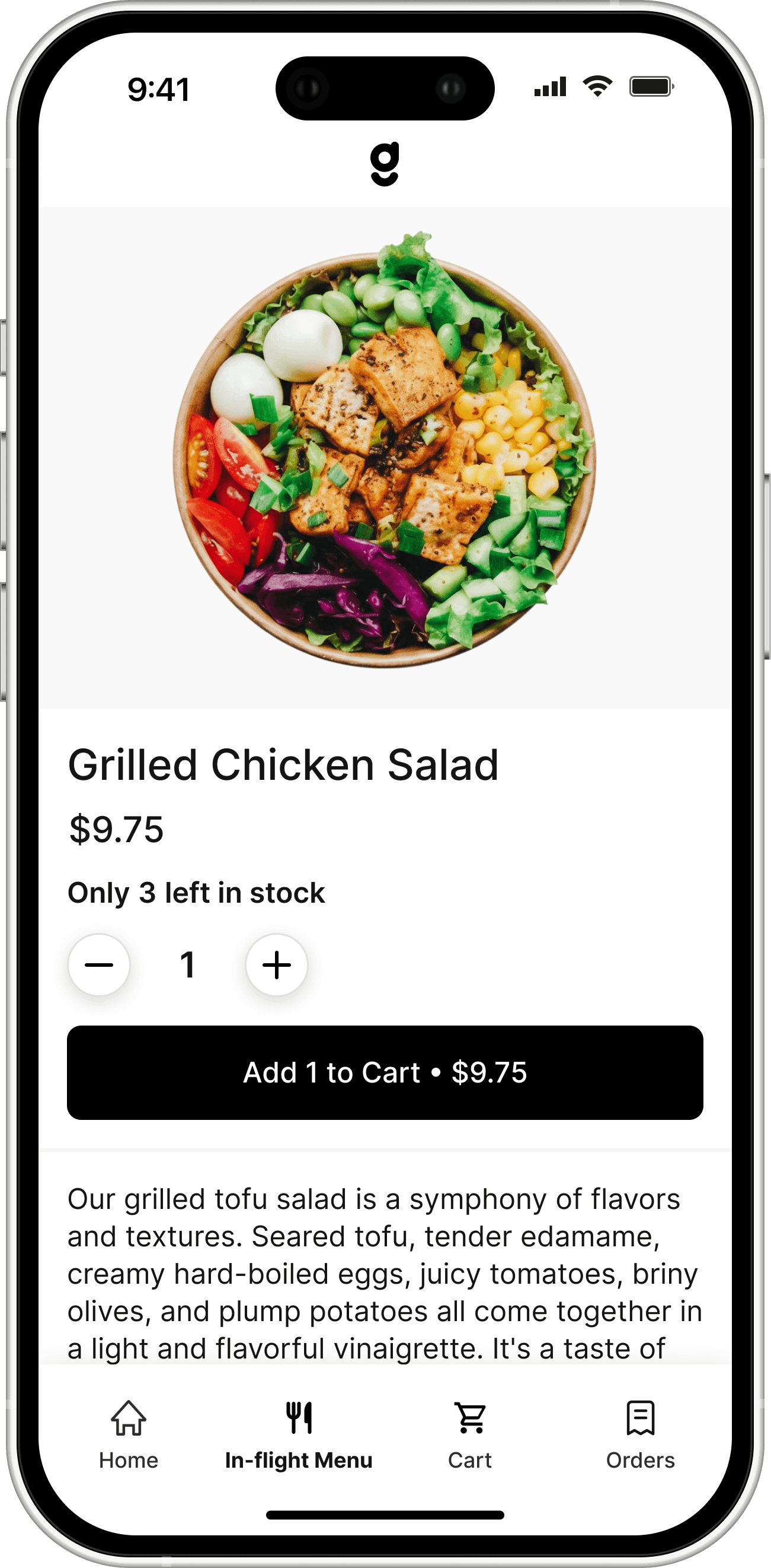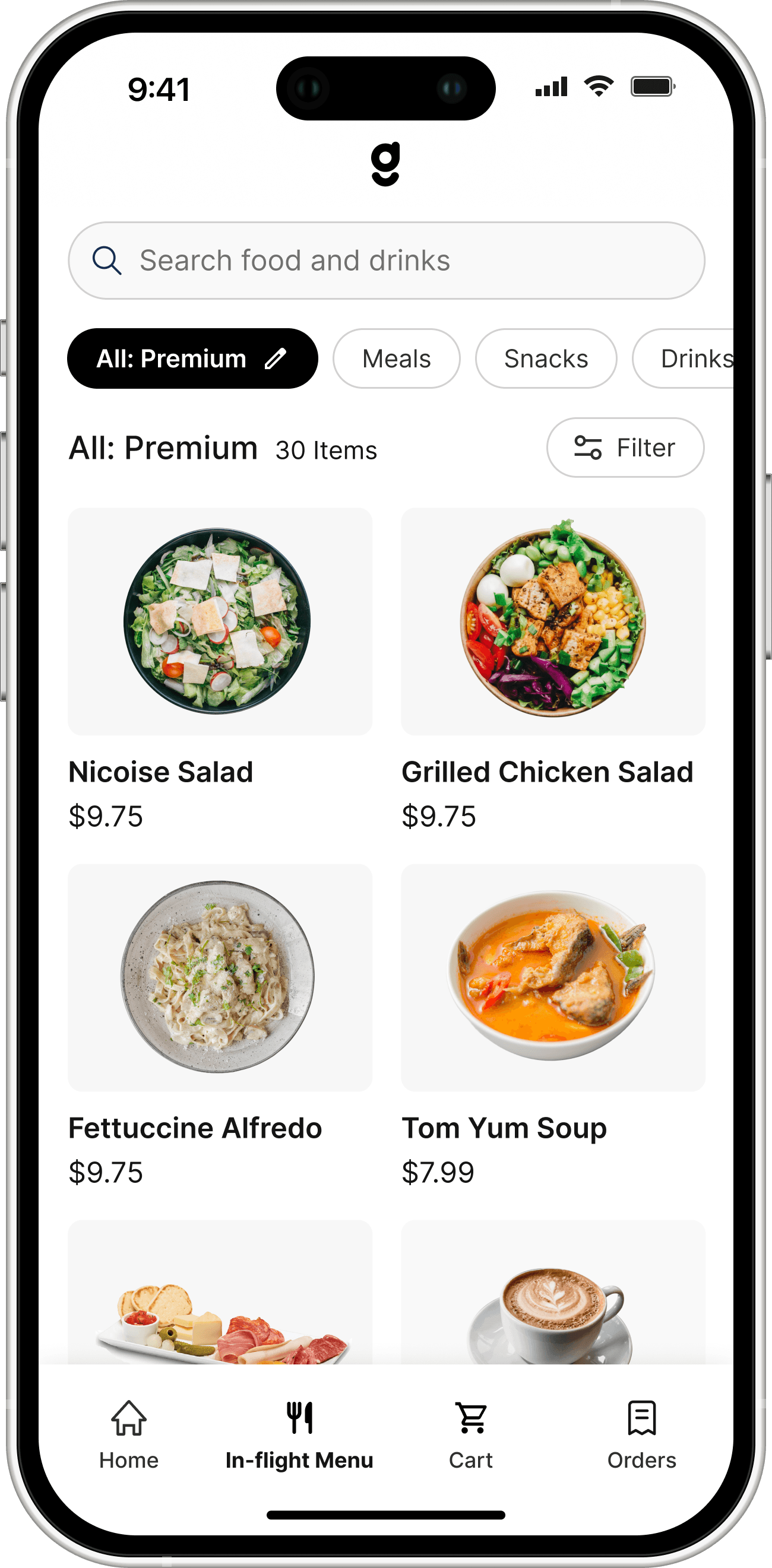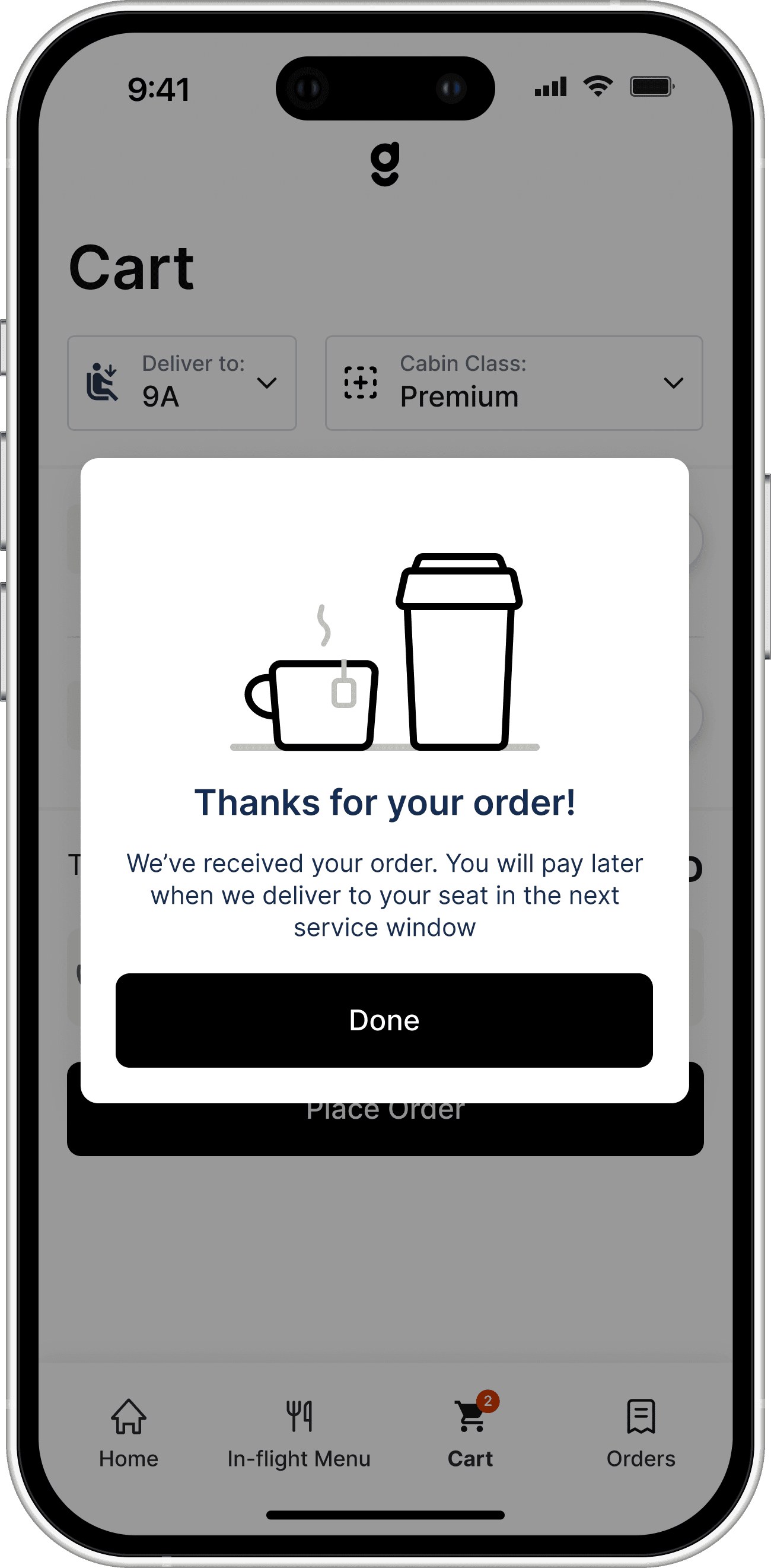 Most orders in the global airline food market are paid through a physical point-of-sales (POS) system: flagging down a flight attendant, and paid by inserting/tapping a credit card — an outdated experience, and inconvenient, since sales can only happen during a small in-flight sales window.