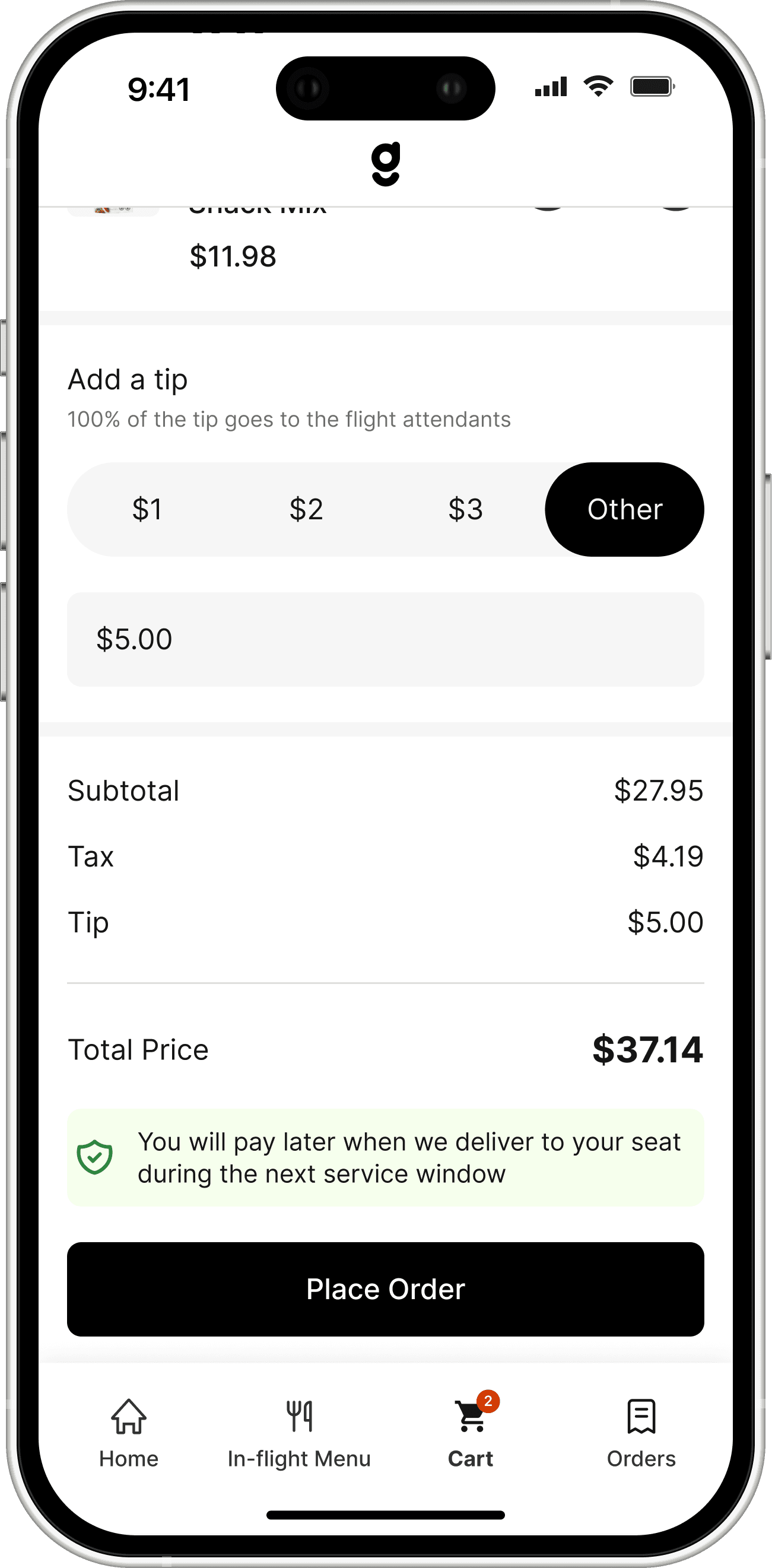 Guest App ordering is very cool, and it's better because passengers miss the cart all the time.